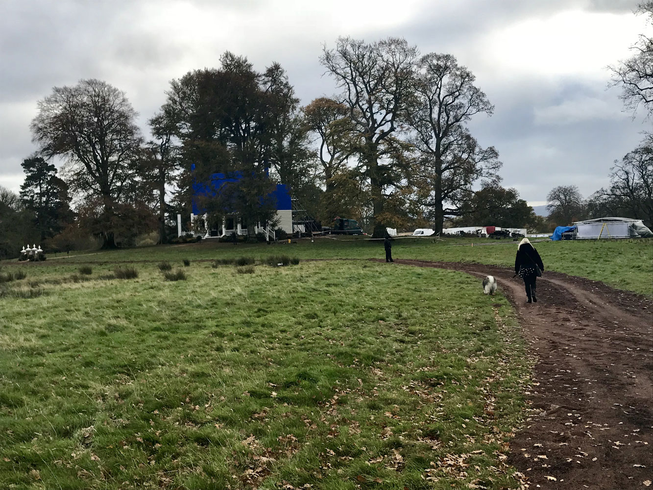 The Abercairny Estates were used in season 4 of Outlander. Three days of filming took place here, using a set built from scratch to represent an American ‘southern’ plantation house. This turned out to be (as we suspected) River Run, the plantation in North Carolina owned by Jamie’s Aunt Jocasta.
