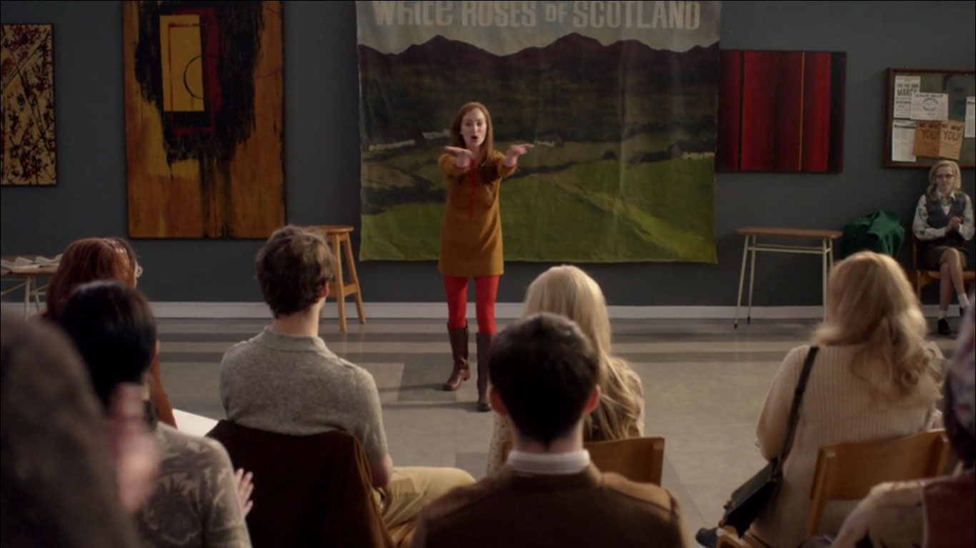 In the final episode of season 2, Brianna and Roger visit Inverness College to carry out some research. While there they meet Geillis who is speaking to a crowd about Scottish independence and Bonnie Prince Charlie. University of Stirling’s Pathfoot Building was used for these scenes.